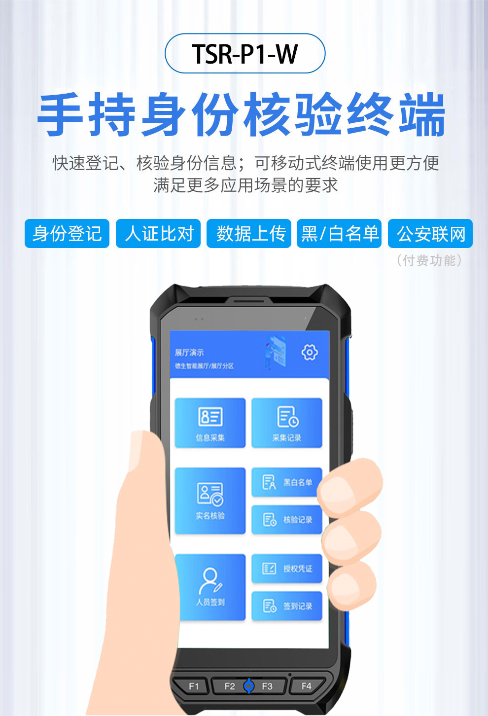 手持便携式人证比对一体机TSR-P1-W